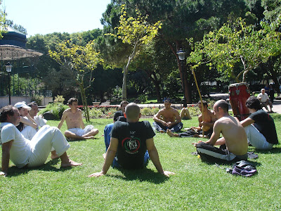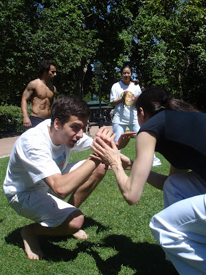 No passado domingo fiz uma mini aula com roda de rua no Jardim da Estrela em que todos os capoeiristas podiam levar amigos para experimentarem a capoeira! Foi muito bom, o tempo estava espectacular e a malta que nunca tinha feito capoeira adorou gingar connosco! É para repetir! também queria agradecer a todos os que poderam vir, ajudar a fazer a festa e a partilhar o que melhor temos em conum: o prazer de fazer capoeira! Ficam aqui uma fotografias para a posteridade. Abraço, Batman
